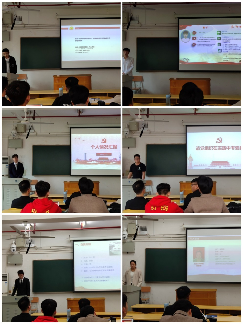 本次答辩共有11名发展对象候选人参加。答辩分为个人展示与现场问答两个环节;在个人展示环节,发展对象候选人通过PPT向党支部展示个人情况,入党动机,学习心得及未来规划等。