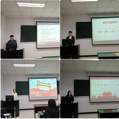 在会议召开之前,党支部就已严格按照党员的发展流程,通过个人申请和党的知识理论水平测试这两种方式,从所联系的团支部中推选出徐巍、杜潇、纪张、毛妮四位同志作为发展对象候选人。