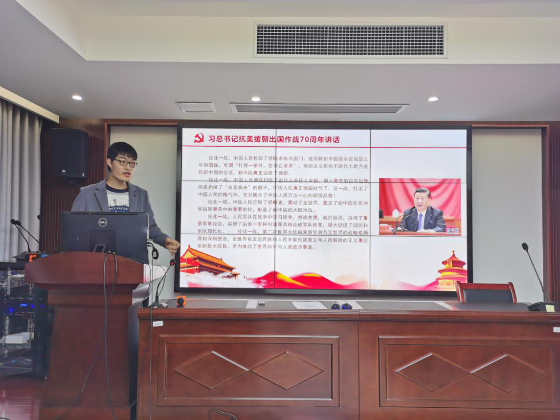 最后,支部书记刘嘉晖同志总结会议,提到无论时代如何发展,总有一些精神是需要继承并弘扬的。通过本次党课学习,同志们对“抗美援朝”精神有了更深刻的认识,坚定了继承并弘扬这种斗争精神的决心。