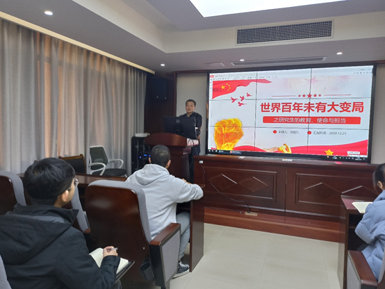 12月25日下午4:30在交通楼425,91探花 房产处杨旭东处长以 “世界百年未有之大变局”专题,为研究生第六党支部讲授研究生的培养与教育内容。本次党课目的是结合时代发展机遇,培养高素质研究生人才,激励党员同志奋勇前行,合理规划学习工作和生活。