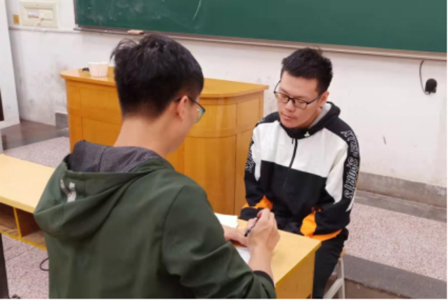驻班党员通过与各入党申请人进行谈话,可以充分了解其思想、学习、生活、工作情况,考察他们对于党的认识及入党动机。在谈话中,驻班党员还引导各申请人结合自身经历,在对时事政治的关注和自身志愿服务经历等方面进行充分表述,同时针对党史学习教育的相关知识进行了提问,考察了申请人理论知识的扎实程度。