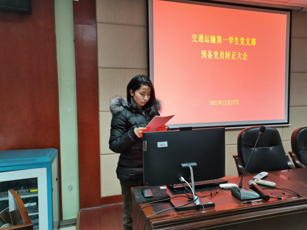 12月27日上午8时30分,交通运输第一学生党支部在交通楼513召开预备党员转正大会。支部全体成员出席本次会议,会议由支部副书记靳凤悦同志主持。