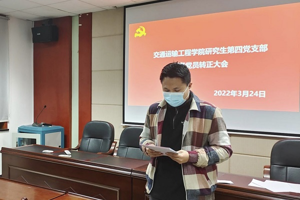 根据《中国共产党发展党员工作细则》以及学院党委有关预备党员转正的工作安排,91探花 研究生第四党支部正式党员与预备党员于3月24日晚上20:00在交通楼513举行了预备党员转正大会,大会应到正式党员29人,实到正式党员26人。本次会议由支部书记谭静同志主持。