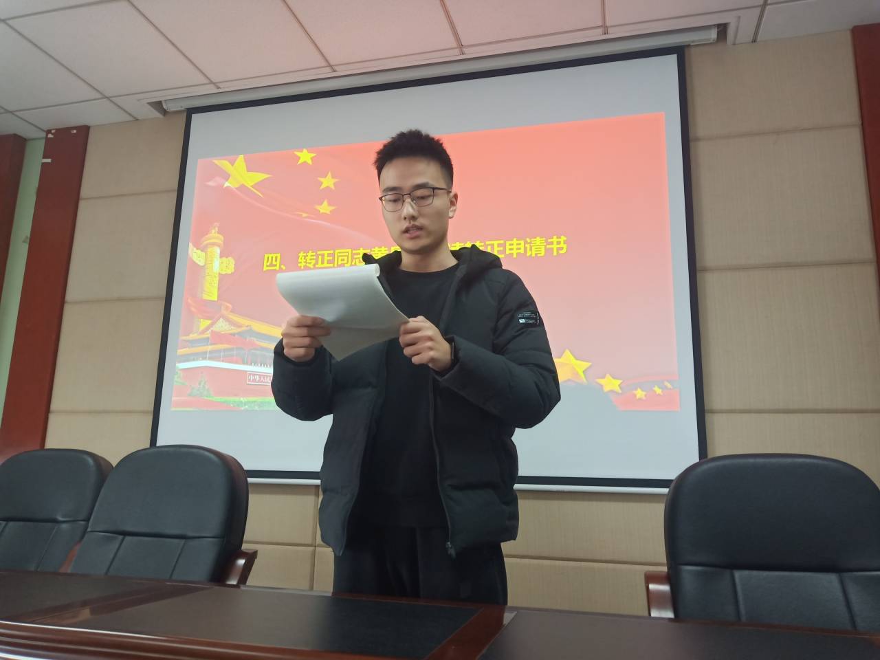 大会分为预备党员转正及支委选举两项议程。会议伊始,李嘉伟、季航、邹雯、黄昱辉、余晨五位同志依次宣读了转正申请书,对自己预备期内的思想、学习、工作、生活等情况进行了汇报,随后入党介绍人介绍其预备期一年来的各方面情况,支委会宣读考察意见,再由与会党员同志发表意见。会议讨论认为,五位同志在预备期内均在思想、学习、工作、生活等方面起到了模范带头作用,能够以党员标准严格要求自己,时刻牢记“为人民服务”的根本宗旨。讨论过后,支部正式党员进行无记名投票,同意以上五位同志如期转正,成为中共正式党员。全体党员同志在黄昱辉同志的领誓下,进行了庄严的入党宣誓。