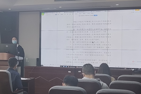 选举工作结束后,支部书记胡心磊同志向大会作2022年度支部工作计划报告。他提到,博士研究生第五党支部作为一个刚成立的支部,目前由22名党员同志组成。博五支部与原博二支部同根同源,每位党员同志都很优秀,既能联系群众,又起到先锋模范作用。希望各位同志今后继续发光发热,既管理规划好个人,又能将支部建设得更好。相信在新一届支部委员的带领下,博士研究生第五党支部能服务好师生,管理监督好党支部成员,做好党建工作,同时能够积极开展专业之间的交流分享活动,相互帮助,共同进步。接着,胡心磊同志组织支部所有同志进行自我介绍,以促进党支部全体党员之间互相了解。