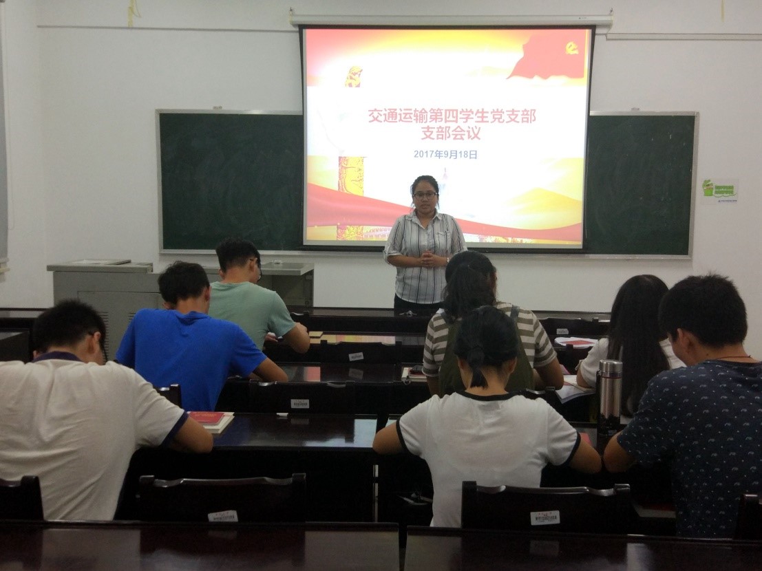 918日晚九点,交通运输第四学生党支部在交通楼515举行专题民主生活会,会上支部成员对照《高校党建工作标准》,积极开展批评与自我批评,支部书记侯君红同志对支部新学期的各项工作做出了安排和部署,交通运输第四学生党支部全体党员参加。