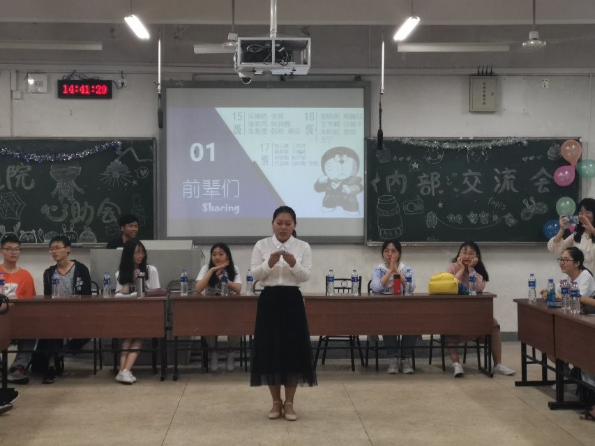 活动伊始,主持人介绍了在座的15级、16级以及17级的同学们。随后由15级、16级同学们给大家分享自己的学习工作经验。