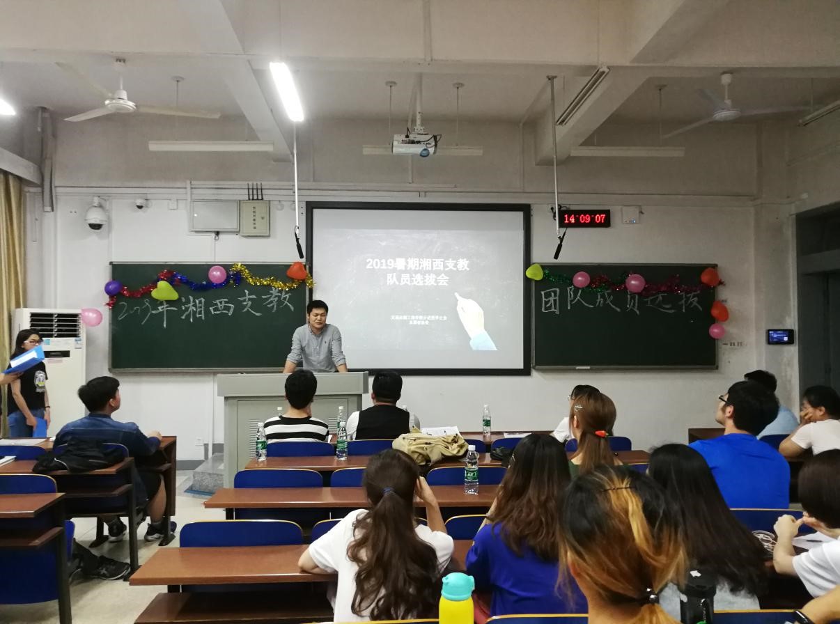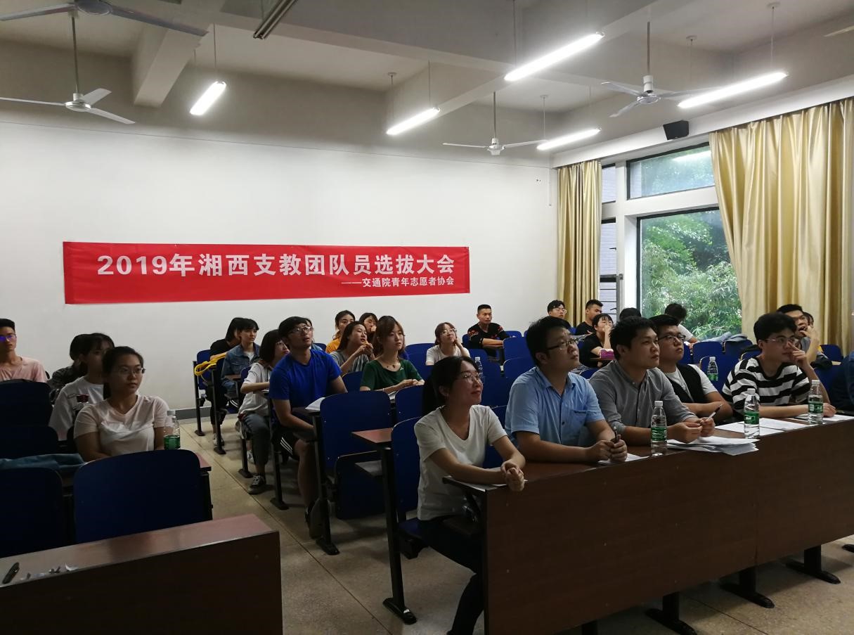 本次暑期湘西支教队员选拔大会于今日下午在新校区A座123教室成功举行。本次活动特别邀请了交通院17级辅导员高辉老师、18级辅导员黄永明老师出席,老师们表示出对于此次活动的高度重视。上一期参与湘西支教的优秀学长学姐也向大家讲述了关于支教活动的意义。