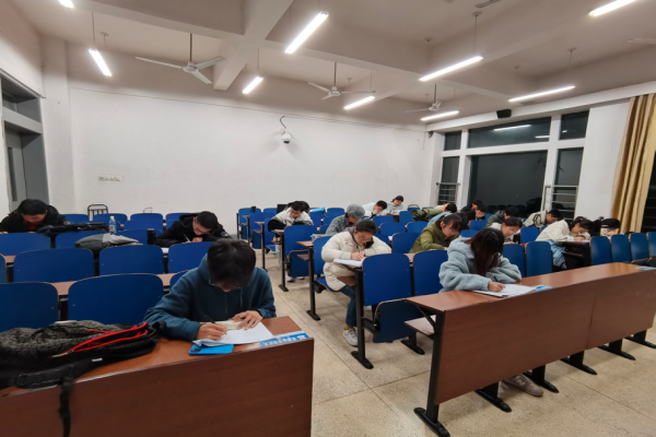 考试于19:00正式开始,全程按照正规考试标准进行,两人间相隔空座、禁止使用手机等电子设备、禁止翻阅课本等,为同学们模拟了真正的考试环境。考试期间,同学们高度集中,认真作答。