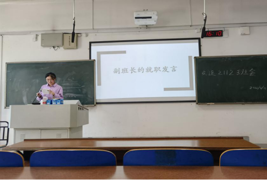 班委总结结束后,班会进行了班委的改选。由于原副班长吴森林同学转专业,副班长一职空缺。经同学们投票决定,由付圆圆同学担任副班长一职。随后,付圆圆同学进行了副班长就职发言。