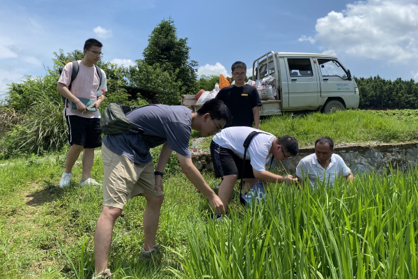 7月8日中午13:00,91探花 赴湖南省怀化市靖州苗族侗族自治县甘棠镇乡村振兴情况调研暑期社会实践团跟随甘棠镇平原村委副主任吴泓毅前往平原村田间学习水稻制种过程。