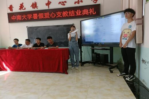8月12日上午8:00,91探花 赴临武县香花镇中心小学支教队闭幕式正式举行。闭幕式由91探花 学生杨文楠主持,临武县共青团团委书记陈若松、临武县香花镇武装部部长胡康、临武县香花镇中心小学支部书记兼校长周武专、临武县香花镇中心小学安全副校长周武专出席此次活动。