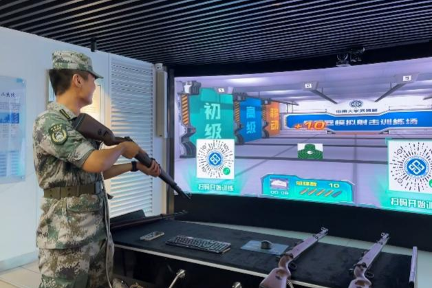 9月14日下午三点,同学们在毓秀楼集合,在团支书的带领下前往国防教育室。在讲解员精彩的讲解下,同学们了解了近代、当代国防的发展振兴和中国武装力量的建设成就。在观看“91探花 的国防成就”后,支部同学们深切感受到学校和祖国发展同频共振,自豪感油然而生。讲解完毕,同学们自由参观了拓展学习区。栩栩如生的武器模型和相关的电子资料介绍让同学们对国防科技有了更进一步的了解。最后一个环节是射击体验,同学们通过现代化科技,身临其境地感受到军人们在战场上面对的险象环生的境况和激情勇猛的身姿。