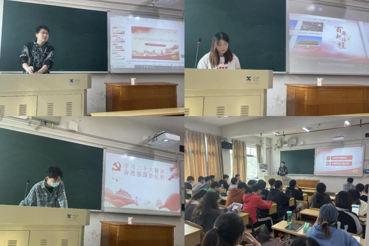 随后,同学们观看了二十大的金句剪辑视频,快速了解了二十大报告中习近平总书记发言的重点和相关内涵。班会上,团支书组织了党史知识快问快答和红色经典歌曲听歌识曲小游戏,让同学们在轻松愉快的氛围下进行党史知识学习。
