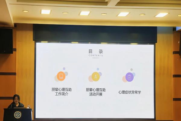 培训会伊始,姜美霞老师从朋辈心理互助工作简介、朋辈心理互助活动开展和心理症状异常学三个方面进行讲述。