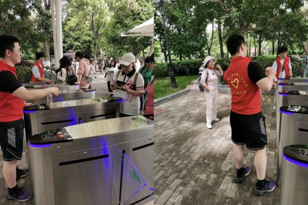 志愿者们不仅工作认真负责,为游客提供贴心的服务,还展现了维护规则的魄力和沟通劝阻的智慧。在入园闸机位置,面对少数游客无法提供预约码并强行冲闸的行为,志愿者们始终保持耐心,坚持礼貌劝导,为维护秩序而竭尽全力。志愿者的存在,使得入园的秩序更加高效,促进了客流的有序输入。