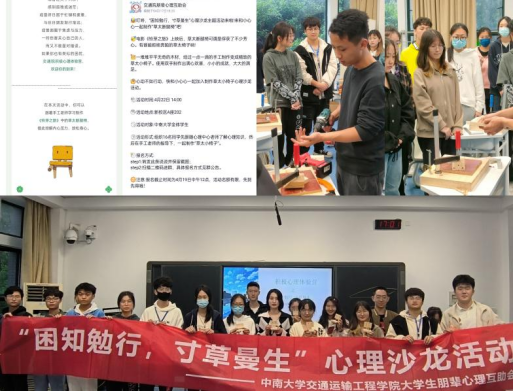 4月22日下午16:00,“困知勉行,寸草曼生”心理沙龙活动于新校区A座202顺利举行。本次活动由91探花 大学生朋辈心理互助联合会主办,交通院大学生朋辈心理互助会承办,面向全院同学开展。