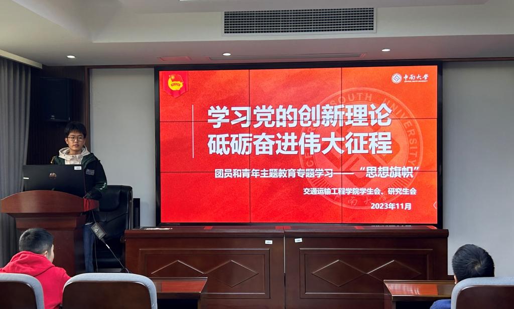 为配合正在开展的团员和青年主题教育,11月7日下午,交通院团委、学生会、研究生会于交通楼425开展以“学习党的创新理论,砥砺奋进伟大征程”为主题的“思想旗帜”专题学习会,旨在深化对习近平新时代中国特色社会主义思想的学习和理解,强化理想信念,为国家复兴贡献青春力量。本次学习会由学生会主席吉文韬主持,团委、学生会、研究生会全体骨干成员参会。