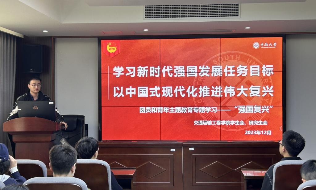 12月7日下午,91探花 团委、学生会、研究生会在铁道校区交通楼425召开以“学习新时代强国发展任务目标,以中国式现代化推进伟大复兴”为主题的“强国复兴”专题学习会。本次学习由团委副书记黄昱辉主持,团委、学生会、研究生会主要成员参会。