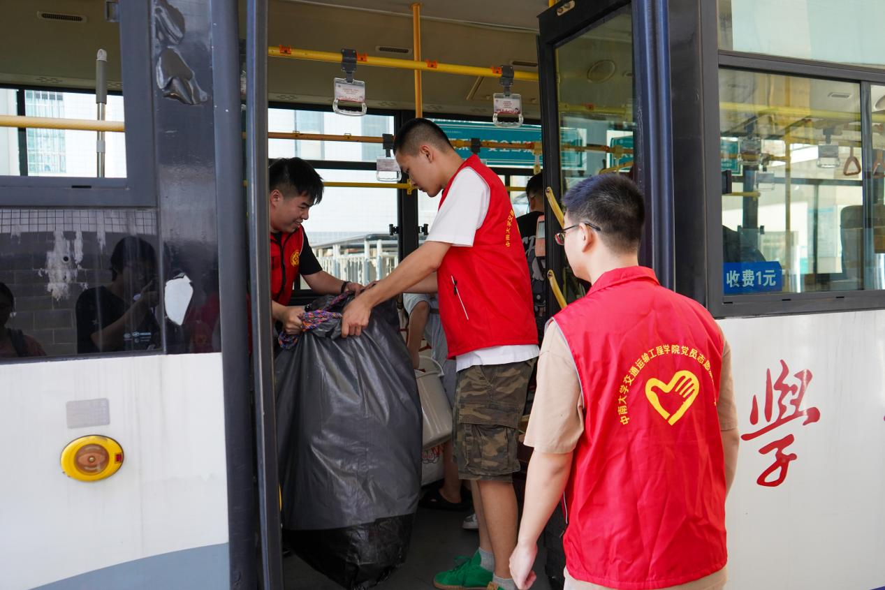 7月9日上午,伴随着从南校区到铁道校区第一台校车的启动,91探花 2022级本科生宿舍搬迁工作正式开始。女生由升华学生公寓32栋搬至铁道校区新一舍,男生由升华学生公寓25栋搬至铁道校区新四舍。