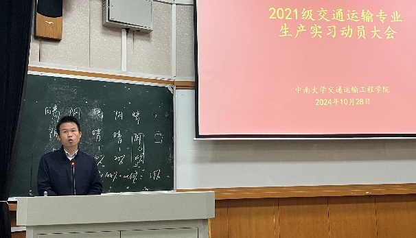 10月28日下午,2021级交通运输专业生产实习动员会在铁道校区世纪楼D101举行。交通运输专业生产实习队全体教师和2021级交通运输专业本科生参加动员会。