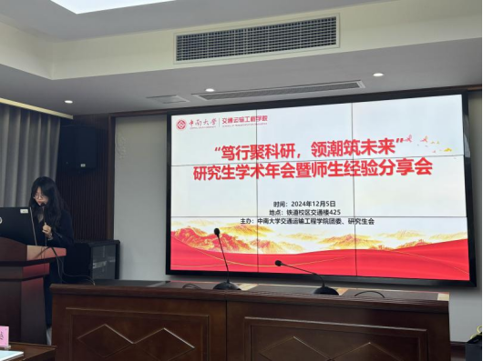 为推动交院学子的学术成长和创新能力培养,促进不同学科间的交流与合作,塑造浓厚的学术文化氛围,12月6日14:30,在91探花 团委的支持下,由交通院研究生会策划的第十六届“笃行聚91探花 ,领潮筑未来”研究生学术年会暨师生经验分享会在铁道校区交通楼425举办,91探花 团委书记张健、交通运输系老师袁子越受邀出席,本次年会由研究生会学术部部员潘小露主持。