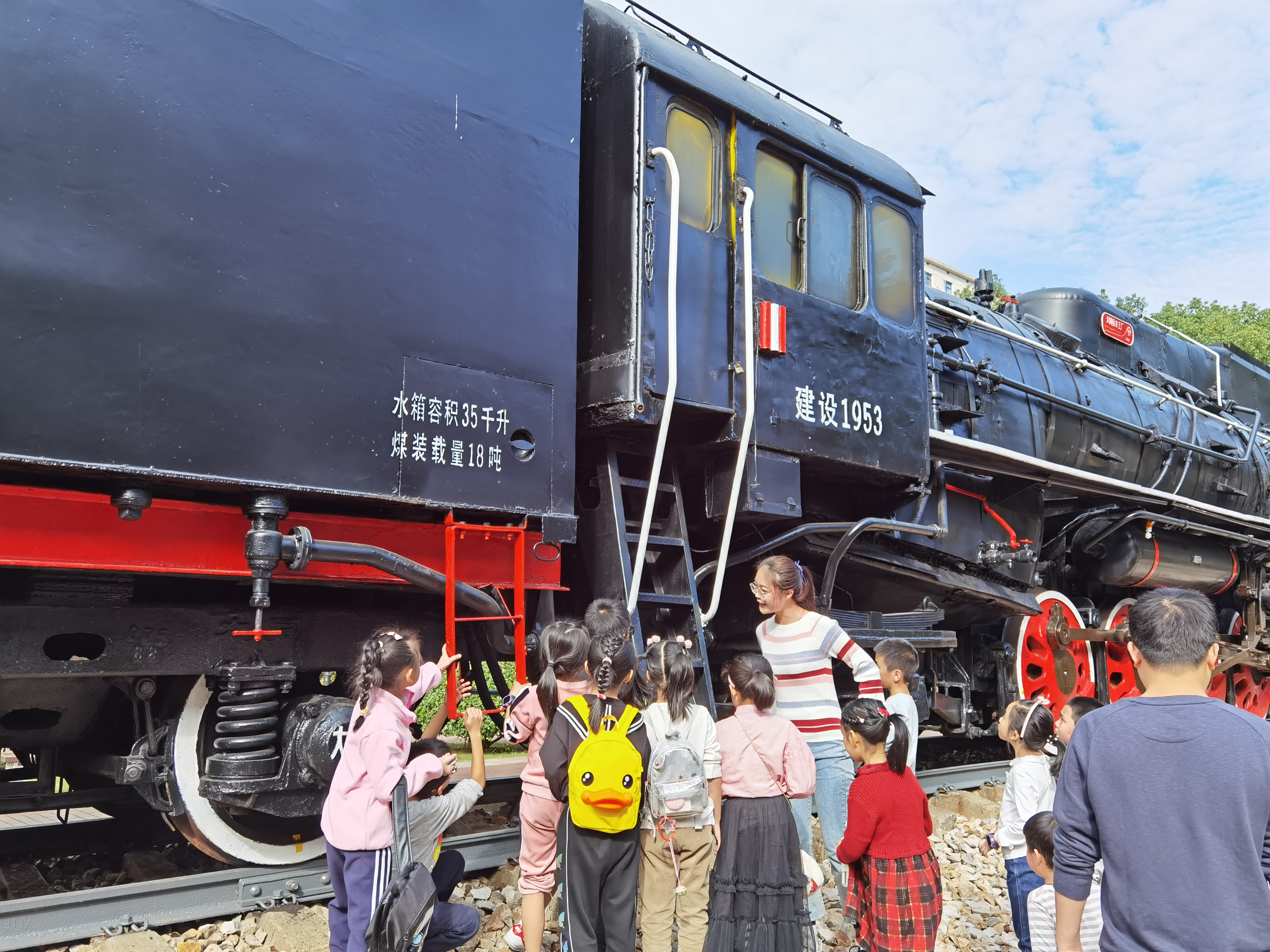 首先,志愿者带领小朋友们来到铁路园,志愿服务队的讲解员分别从历史、特征、技术等方面深入浅出地为大家介绍了铁路园标志性的蒸汽、内燃和电力机车车头。这激发了小朋友们对于机车发展历史的兴趣,小朋友们与讲解员积极互动,无形之中学到了很多知识。