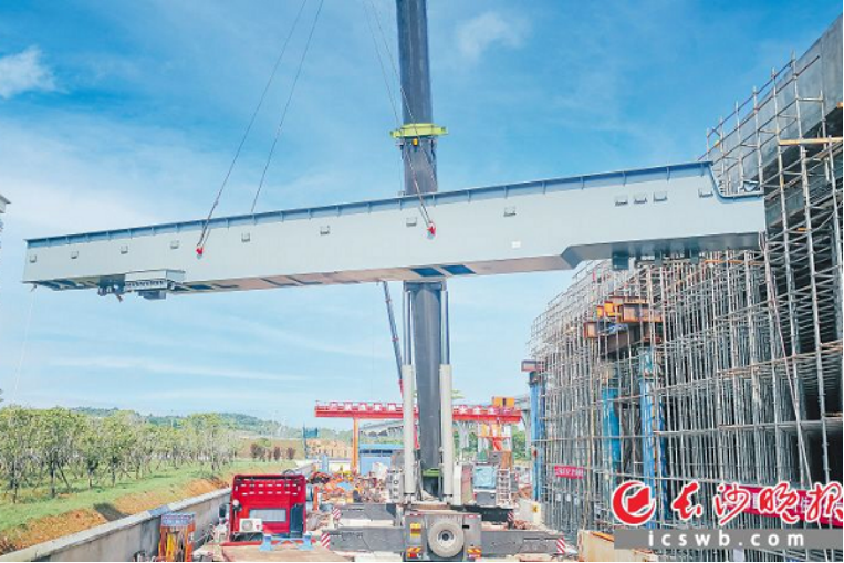 长沙磁浮快线在连接长沙火车南站与黄花国际机场两个重要枢纽基础上,其延长段将实现长沙火车南站与正在建设的黄花机场T3航站楼间快速接驳,方便旅客高效出行。24日,在长沙磁浮快线黄金大道特大桥南侧,两组单片重达41吨的磁浮道岔主梁,在600吨汽车吊的配合下,依次被吊装至10多米空中,并稳稳地落在道岔梁上,这标志着长沙磁浮东延线接入T3航站楼工程取得阶段性进展,东延线接入既有磁浮快线区间开岔施工进入最后准备阶段。