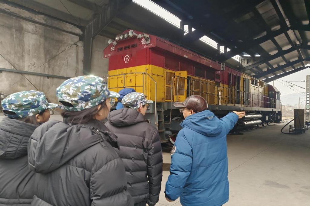 1月22日上午,91探花 交通院赴湖南省株洲市交通调研寒假社会实践团抵达株洲机务段开展参观实践活动,学习铁路线路的运输任务以及机车质量的日常维护工作。