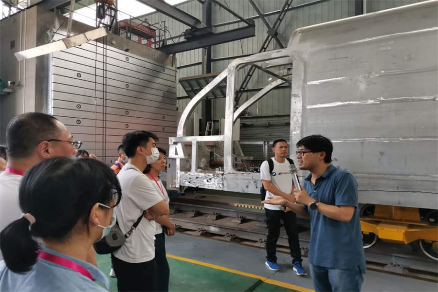随后,在交通学院志愿者的引领下,代表团来到了高速列车研究中心(即轨道交通安全教育部重点实验室),参观动模型试验台、实车撞击试验台,由交通学院高速中心张老师、周老师负责介绍。