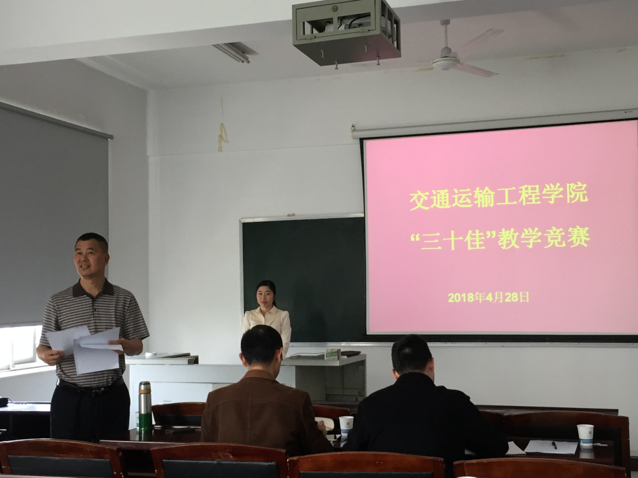 “三十佳”教学竞赛在交通楼515举行,比赛由罗意平教授、符卓教授、傅勤毅教授担任评委。