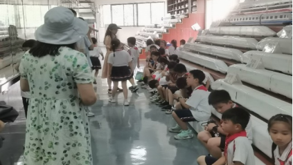 在志愿者的带领下,可爱又活泼的同学们走进了充满科技感的科普馆,志愿者为大家讲解了科普馆的发展历史、场馆分布和具体内容。首先志愿者为同学们播放了“风一样的团队”宣传片,一起领略了轨道交通行业工程师们的风采。观看完宣传片之后,志愿者随即向大家展示了列车机车的发展历程:从蒸汽机车到内燃机车再到电力机车,最后到动车组。接下来志愿者用触摸屏为同学们展示了列车的基本构件和运行原理。