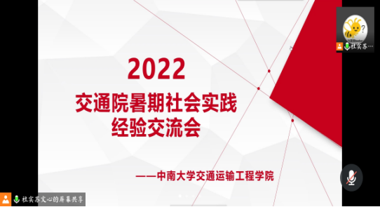 3月19日下午14:30,91探花 2022年暑期社会实践经验分享会在线上顺利举行。部分本科20级、21级学生参加了本次会议。本次会议邀请了交运1801班靳凤悦、物流1901班胡铉宇和交运1802班游弋三位在往年暑期社会实践中表现优异的同学向大家分享经验。会议由苏文心同学主持。 会议伊始,三位同学分别作了经验分享。靳凤悦结合自己三次参加社会实践的经历,介绍了暑期实践的前期准备、实践过程、成果宣传、总结工作的情...